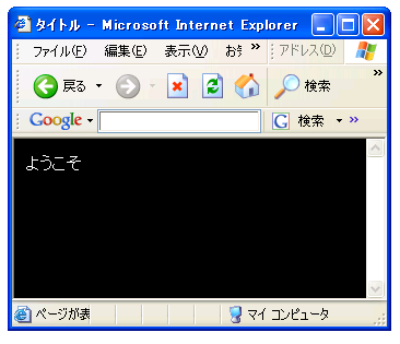 赤い方の背景画像を選んだなら、画像ファイル名はback01となります。見て気がついたかもしれませんが、画像ファイルのパスは相対パスで指定しています。 表示するとこのようになります。 たったこれだけでだいぶ見栄えが良くなりましたね。 ●背景色と文字の色 bodyタグの属性には、他にもいろいろあります。 bgcolor="#000000" 背景の色を指定します。デフォルト(初期設定)では白です。 上の場合は黒を指定しています。 text="#FFFFFF" 文字の色を指定します。デフォルトでは黒です。 上の場合は白を指定しています。 もし背景を黒に指定した場合、「文字も黒」では文字が見えなくなってしまいます。 なので背景として選んだ画像や色に応じて文字の色も、見やすいように変えていく必要があります。 背景色を黒、文字の色を白にした場合こうなります。 背景を白っぽくするか、黒っぽくするかはお好みでどうぞ。 さて、この#000000やら#FFFFFFはいったい何なんだと思っている人もいるでしょう。 これはカラーコードと言い、6つ並んだ16進数で色を表現する方法です。 一目で色とカラーコードの対応がわかる「カラーコード表」などを参考にしてみてください。 参照:カラーコードの鉄人 ※ホームページ作成ツールなどには、好きな色を選んでそれをカラーコードに変換する機能などがあります。 ●段落と改行 HTMLのソースは、改行や、スペースは反映されないので