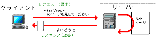 他にも、リアルタイムでコミュニケーションが取れる「チャットルーム」や、他にも「アンケートフォーム」 などもCGIで作ることが出来ます。 ●CGIの仕組み〜静的ページと動的ページの違い〜 静的ページでは、ただクライアントがWebページをサーバーに要求するだけでした。