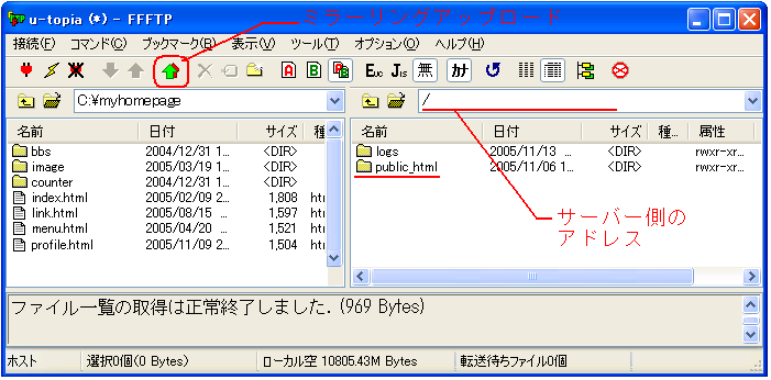 TOPページ >> アップロード@ >> アップロードA実際にサーバーにアップロードしてみる