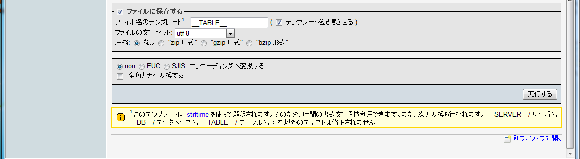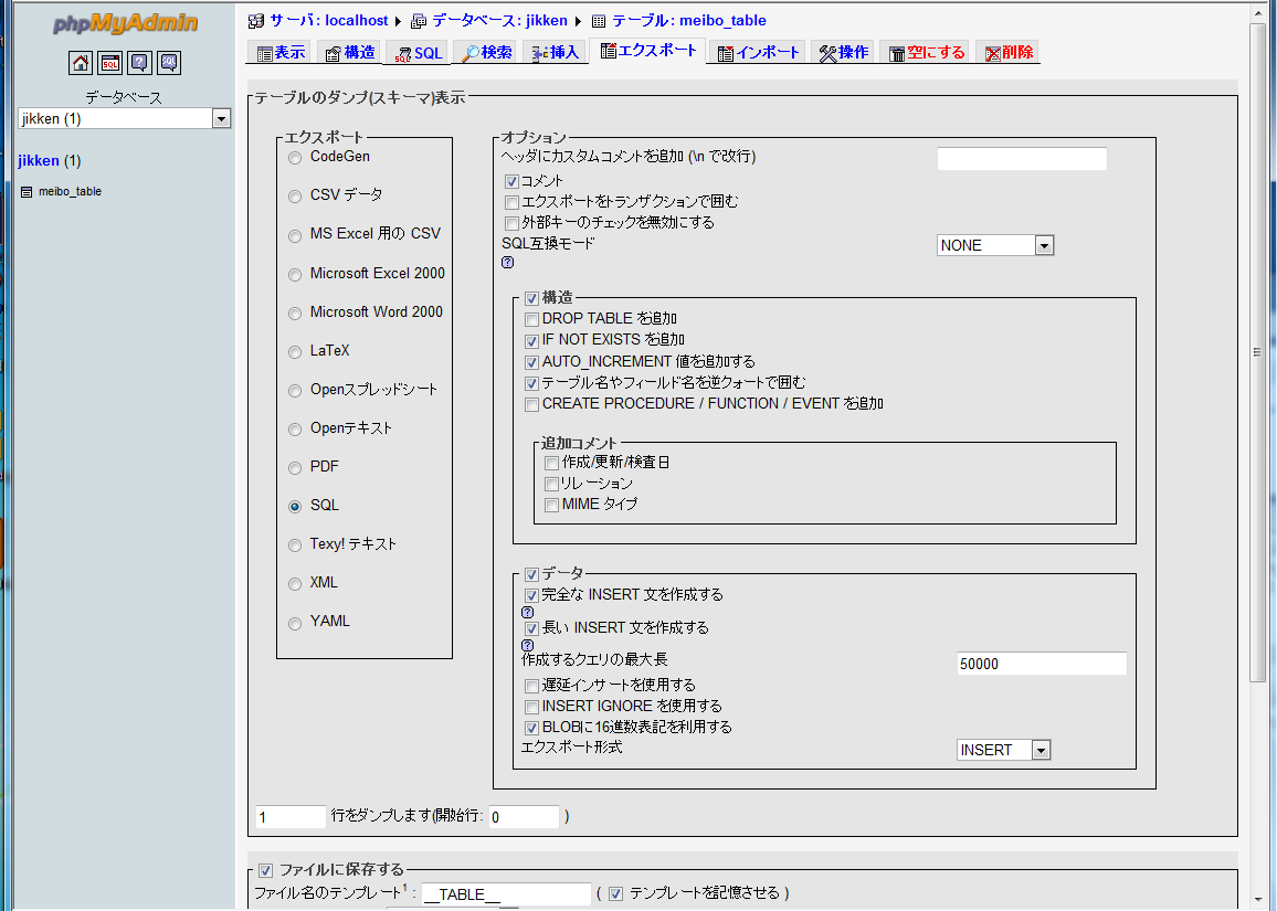 テーブルのバックアップ(エクスポート)